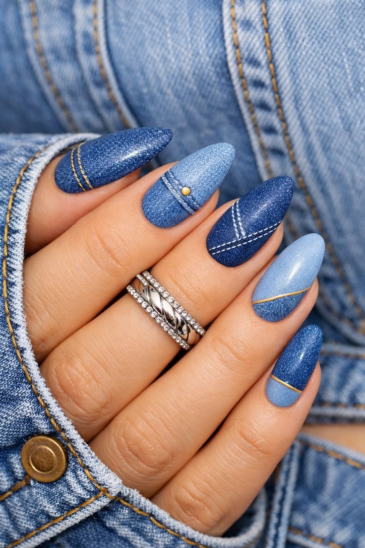 What makes denim blue nails especially appealing is their versatility. The color works beautifully as a solid manicure for a clean and minimal look, but it can also be elevated with subtle design details. Light stitching effects, faded ombré blends, or matte finishes can enhance the denim illusion. For a more playful approach, pairing denim blue with white accents, tiny stars, or silver studs adds a casual yet trendy twist without making the design too busy.