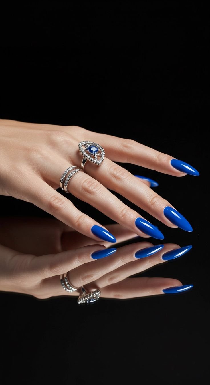 What makes cobalt blue nails so striking is their simplicity. A full set in this vibrant shade already makes an impact, but you can elevate the look with creative accents. Consider adding glossy top coats for extra shine or experimenting with matte finishes for a more contemporary feel. Subtle nail art like thin silver lines, geometric patterns, or minimalist negative space can enhance the boldness without overpowering the color. For a more dramatic effect, pairing cobalt blue with metallic elements like chrome or glitter adds depth and dimension.