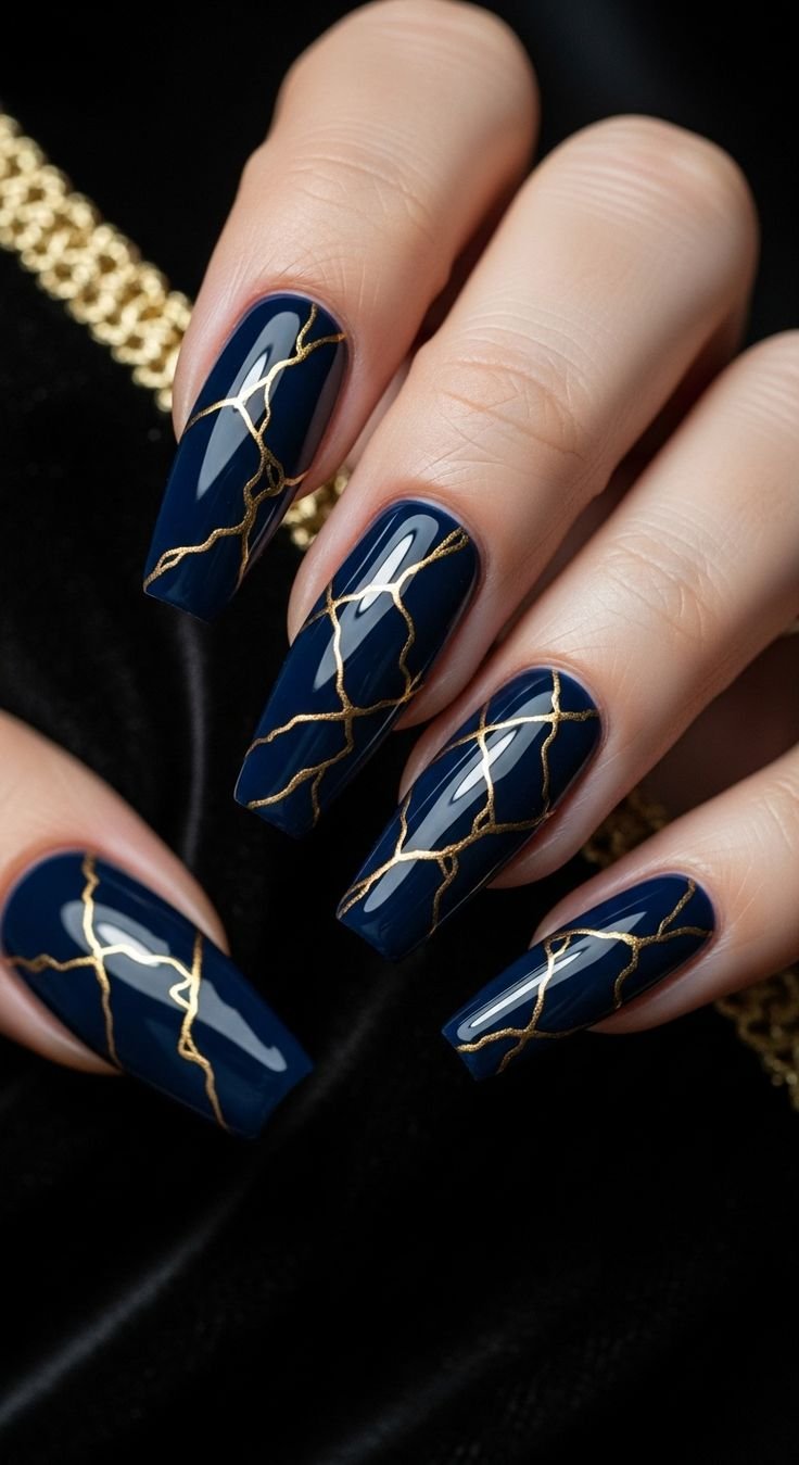 Royal blue nails exude luxury, especially when paired with gold accents. In 2026, this combination is a top choice for fall glam. Gold foil, glitter, or metallic stripes add a touch of elegance to the rich blue base. This style works well for special occasions, offering a regal and polished look. The contrast between deep blue and shimmering gold creates a striking visual effect. Whether you choose a full set or just accent nails, this design never fails to impress.