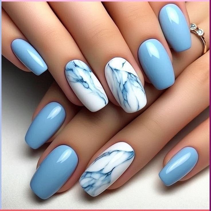The beauty of blue marble nails lies in their versatility. You can opt for deep navy and charcoal swirls for a dramatic autumn feel or choose lighter blues for a softer, more airy effect. Adding fine gold veins or metallic accents enhances the marble illusion and gives the design a sophisticated finish. Glossy top coats are often preferred to highlight the intricate patterns, but a matte finish can also create a modern, muted version of this classic style.