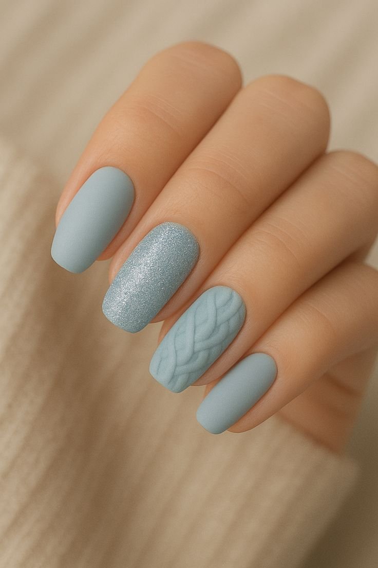 5. Baby Blue Sweater Nails