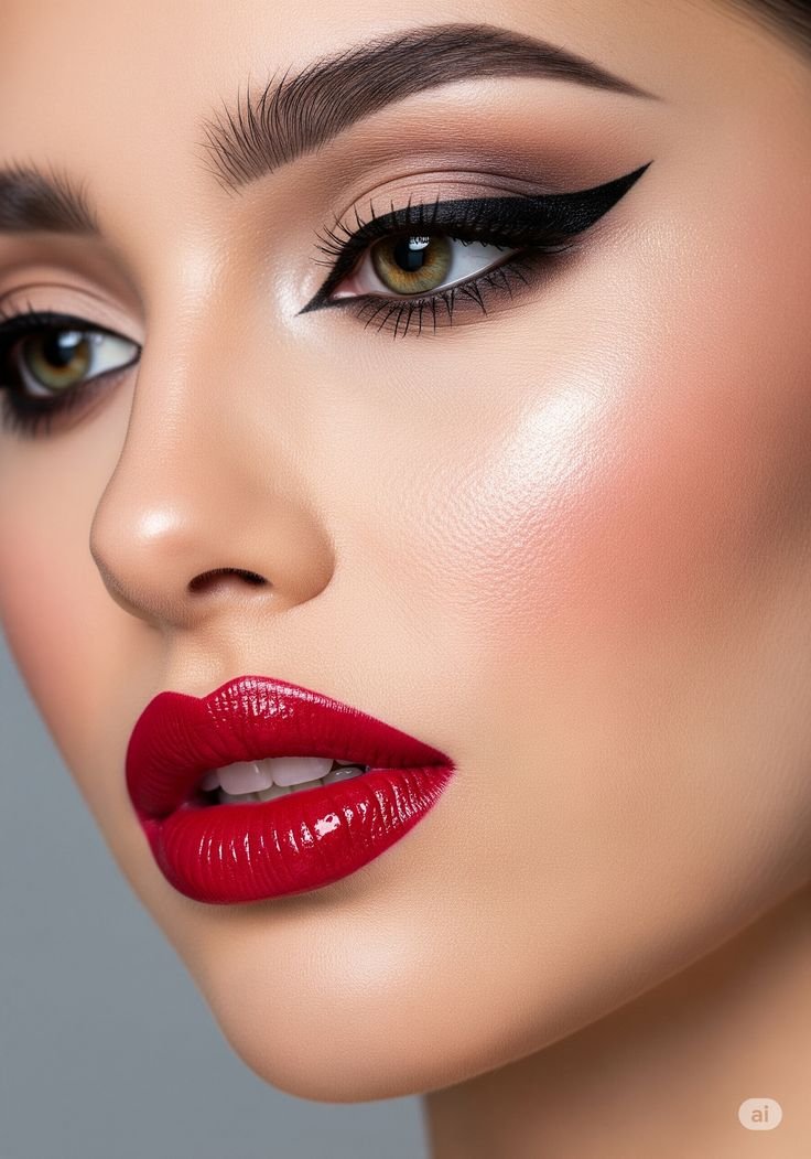 Nothing says Christmas like a bold red lip, and in 2026, this timeless look is making a strong comeback. Focus on flawless skin with a matte foundation and subtle contouring to define your features. Keep eye makeup simple with neutral shadows and a sharp black eyeliner. The star of this look is the lips—choose a rich, velvety red lipstick in a matte or satin finish. Add a touch of highlighter to the high points of your face for dimension. This style works beautifully for evening parties and formal events, delivering elegance and confidence in a classic holiday way.