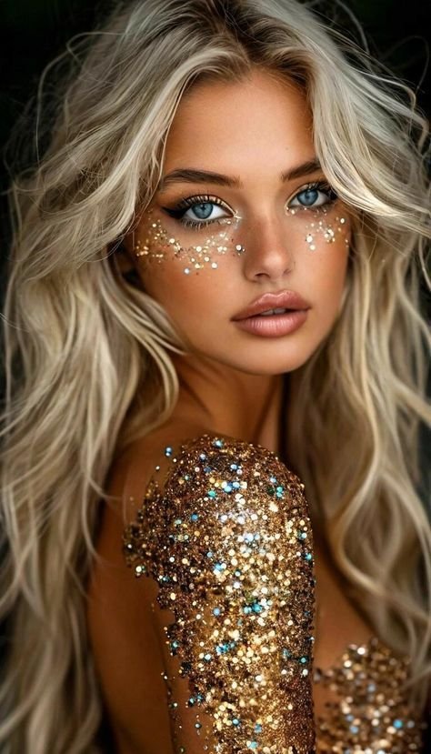 Gold never goes out of style during Christmas. Use golden highlighter generously on cheekbones, nose, and brow bones. Eyes can feature metallic gold shadows blended with bronze for depth. Pair with nude lips and bronzed skin for a sun-kissed festive glow. This look radiates warmth and elegance.