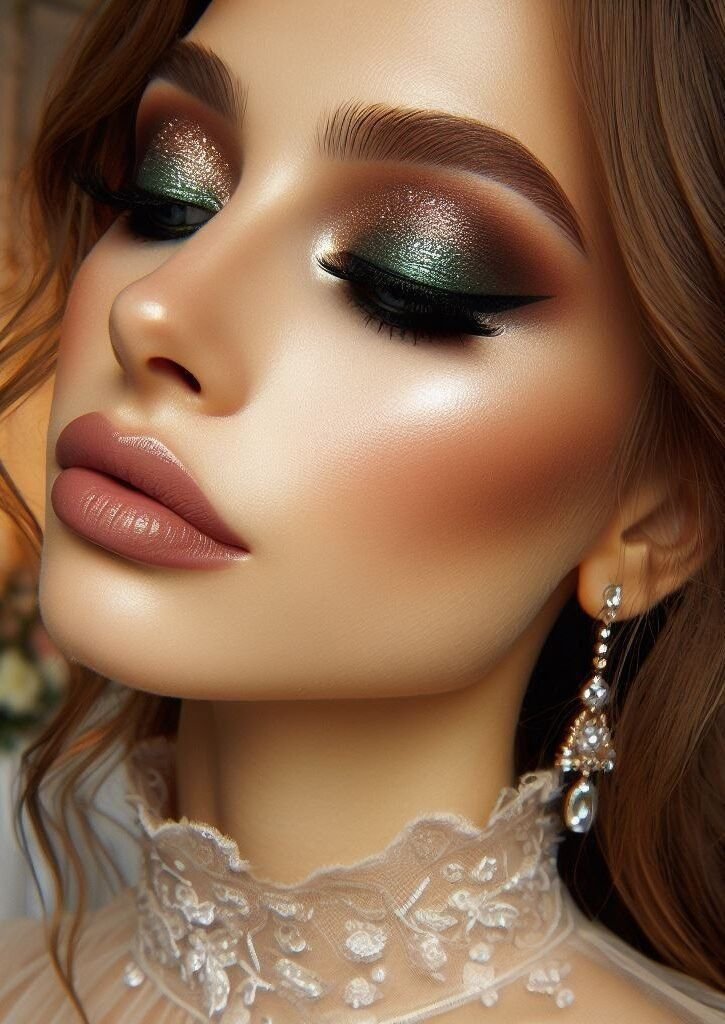 Deep green tones are a major trend for Christmas 2026. Create a bold eye look using emerald or forest green shadows blended with gold accents. Keep the base soft and glowing to let the eyes stand out. Add dramatic lashes for extra flair. Lips can remain neutral with a nude gloss or soft pink lipstick. This look is ideal for evening events and adds a sophisticated holiday twist beyond traditional reds.