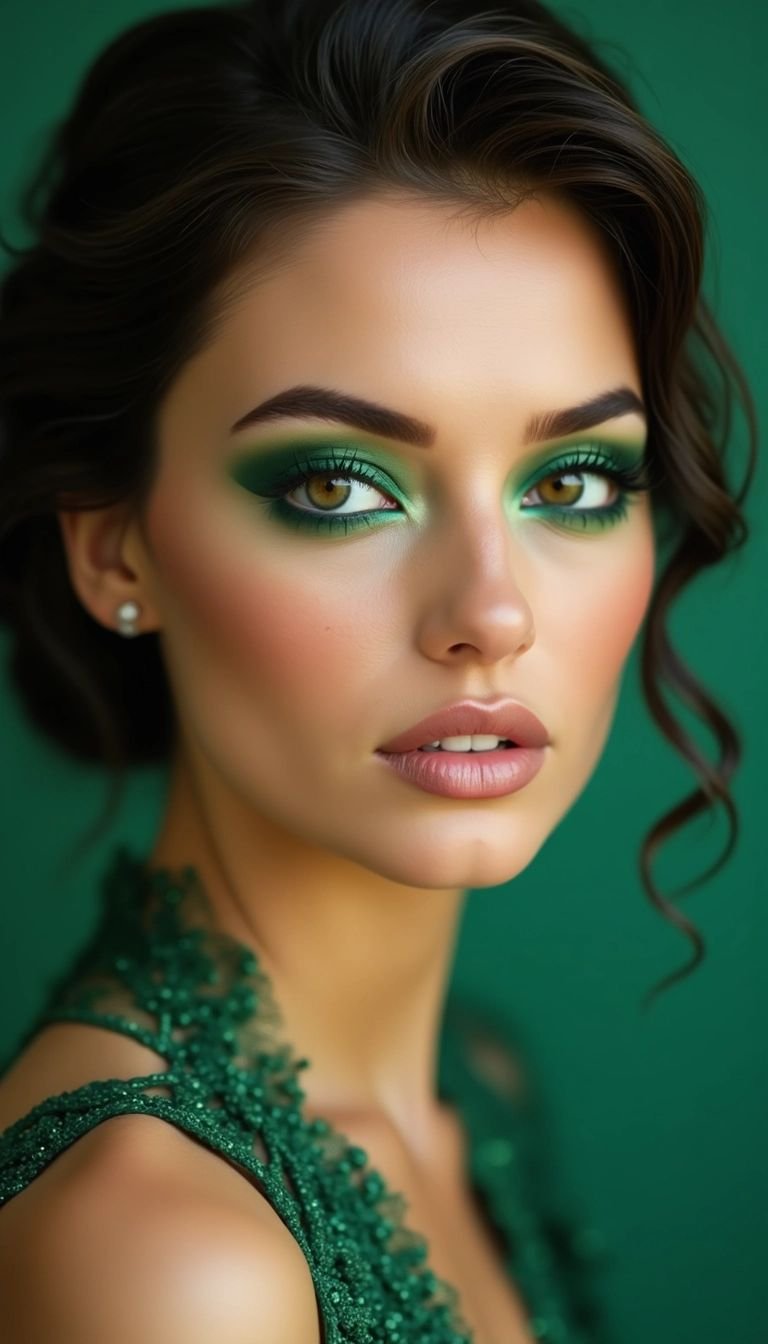 Start with a flawless base using a medium to full-coverage foundation, keeping the skin smooth and softly radiant. Add a touch of bronzer and a warm-toned blush to bring balance and warmth to the face. Since emerald green is a strong shade, a well-prepped base ensures the overall look feels polished and cohesive.