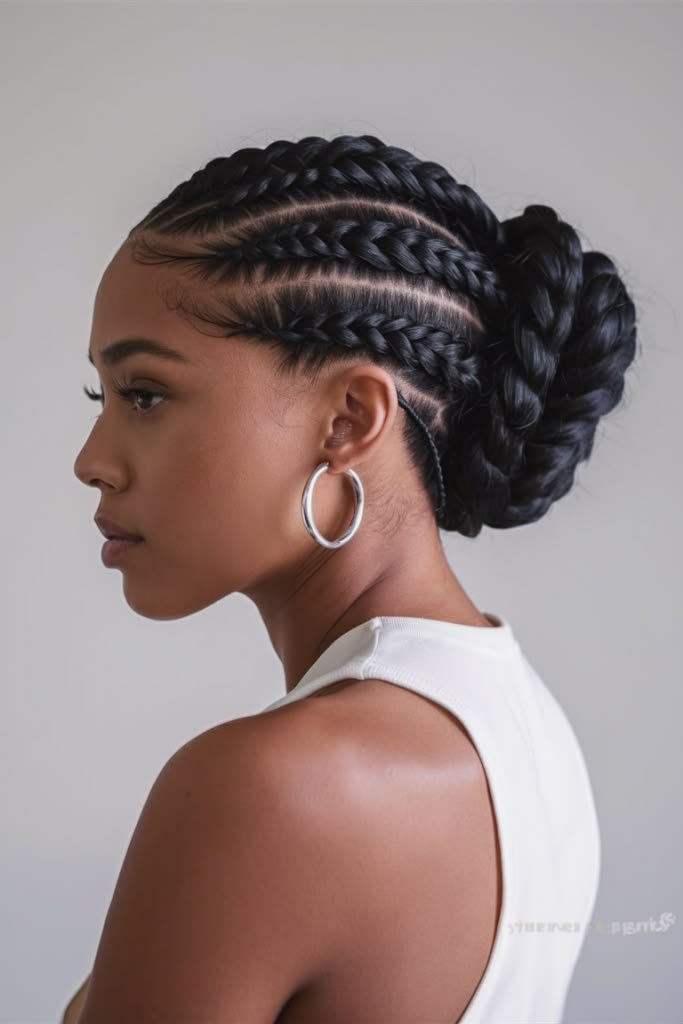 Cornrows are a classic protective style, and updo variations are trending this fall. Sleek, intricate patterns leading into buns or twists create an elegant finish. This style keeps hair secure and off the neck, ideal for cooler weather. Cornrow updos are versatile and can be worn for both casual and formal occasions. Adding designs or geometric patterns enhances the look. They’re low maintenance and long-lasting. This hairstyle combines tradition with modern creativity, making it a favorite for fall 2026.