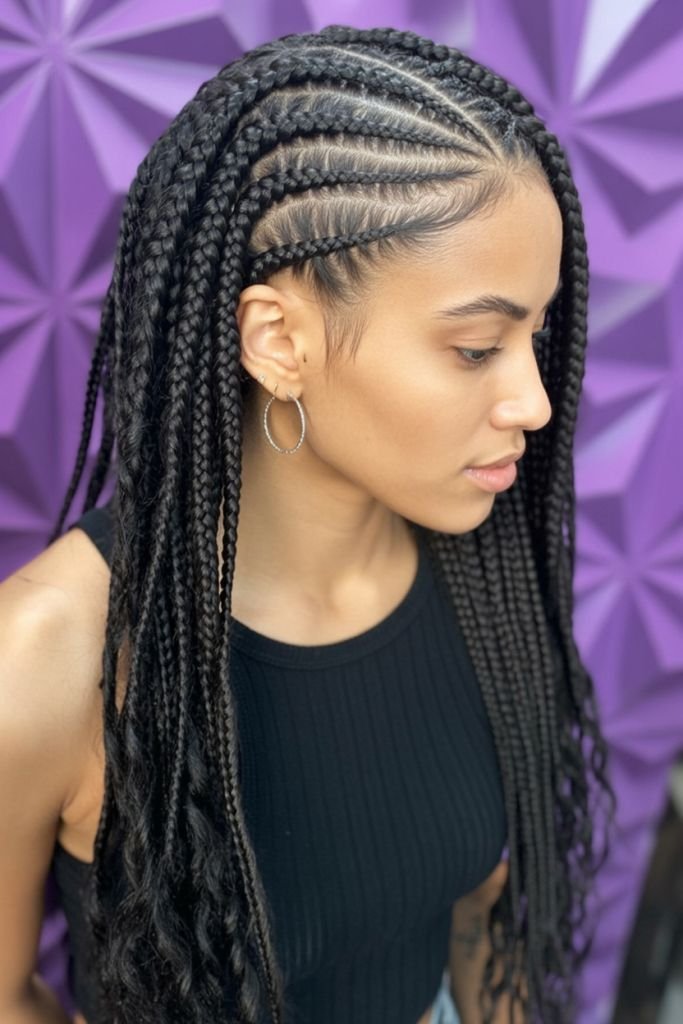 Combining different braid sizes and textures creates a dynamic look. This trend focuses on individuality and creativity.