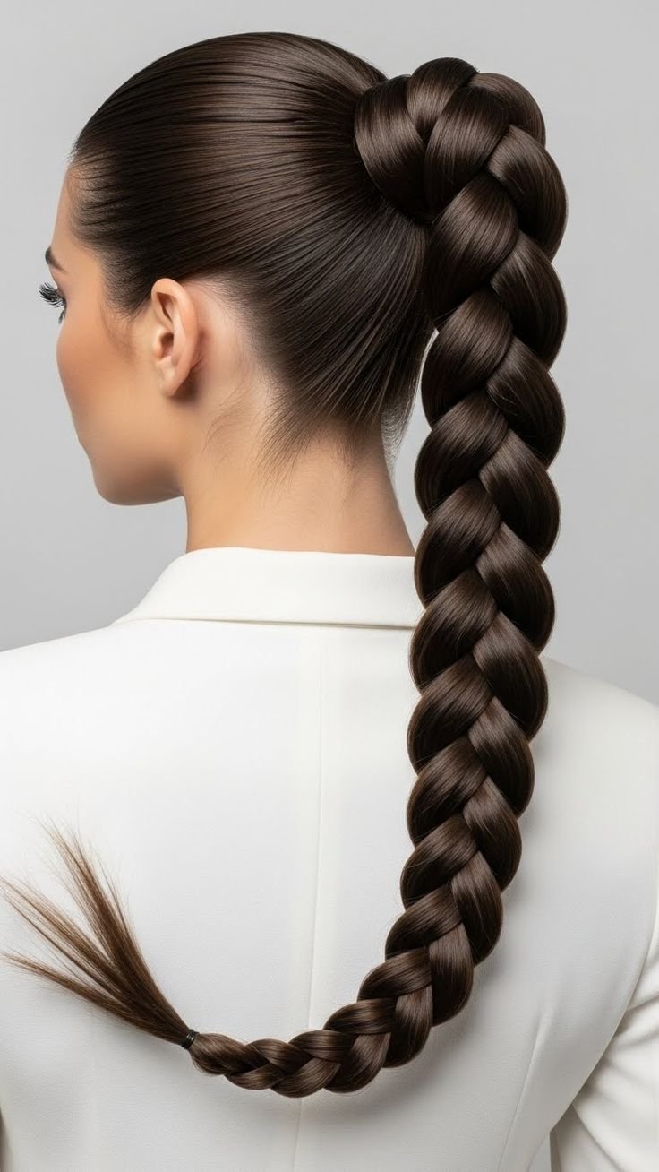 The braided ponytail is sleek and fashionable. High or low variations offer different vibes, from sporty to elegant. This style is perfect for showcasing length and keeping hair protected. Adding extensions creates fullness and volume.