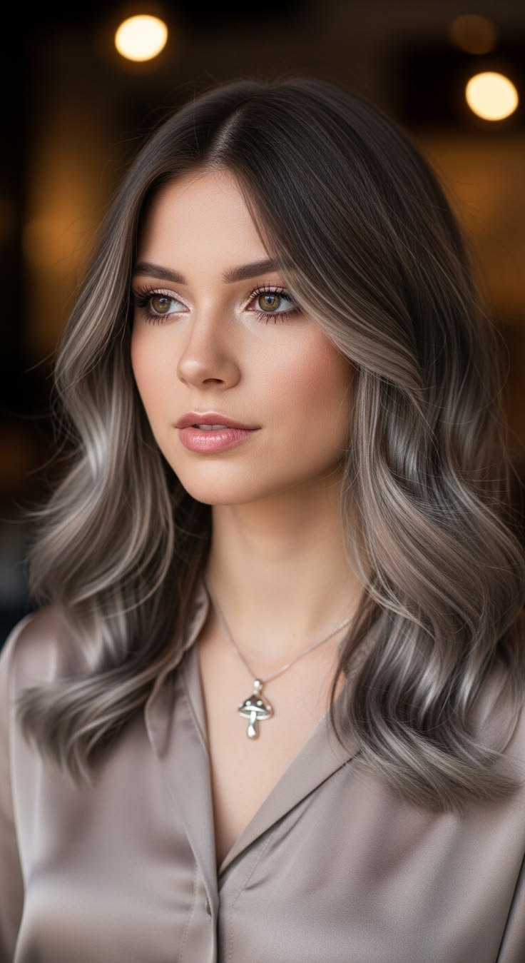 Iced brunette features cool, almost silvery tones blended into dark brown. It’s edgy, modern, and perfect for trendsetters.