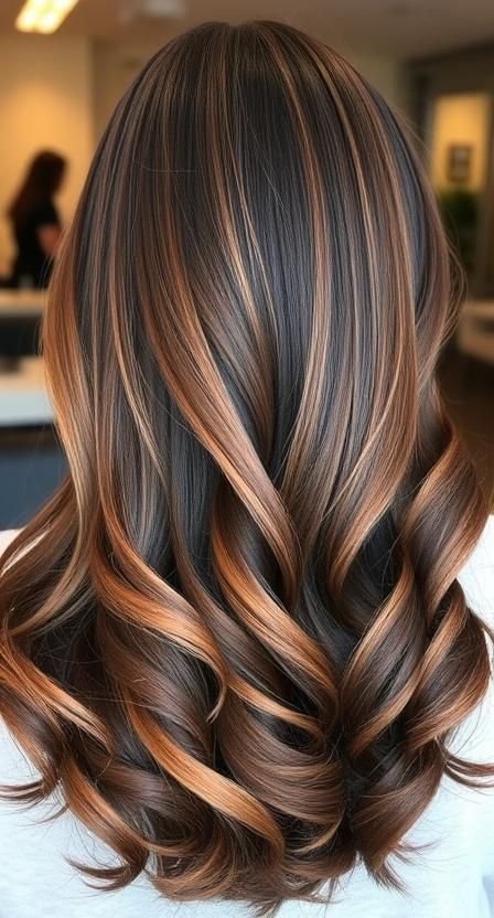 For a cooler, more refined look, espresso hair with ash highlights is a top trend this fall. The deep, almost-black brown base creates a striking contrast with soft, smoky ash tones. This combination adds a modern edge to traditional brunette shades. It’s particularly flattering for those with cool or neutral undertones. The ash highlights help break up the darkness, adding dimension without overwhelming the base color. This style works well on straight or sleek hairstyles, where the contrast can really stand out. It’s also a great option for professionals seeking a polished appearance. With proper toning treatments, the ash tones stay fresh and vibrant. This look embodies understated elegance and is perfect for those wanting a subtle yet impactful seasonal change.