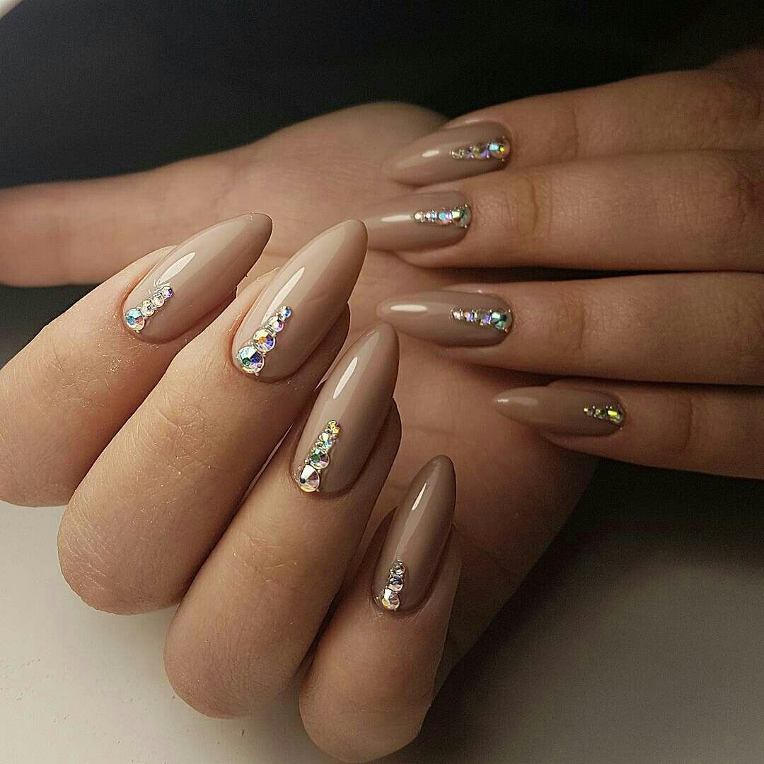The foundation of this design is the nude palette—shades ranging from soft beige and taupe to blush and warm caramel. These neutral tones provide a versatile and timeless base that complements any skin tone or setting. By themselves, nude shades evoke elegance and simplicity, but when paired with gem details, they gain dimension, shine, and a sense of luxury.