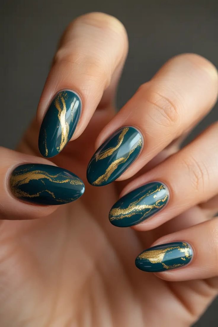 You can choose a high-gloss finish for a sleek and polished look or opt for matte to create a more modern and understated effect. Dark green nails also pair beautifully with metallic accents like gold or bronze, adding depth and richness to the design. This shade works well on all nail shapes, from short and square to long and almond.