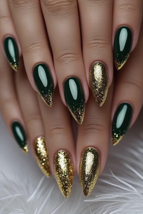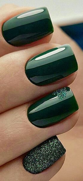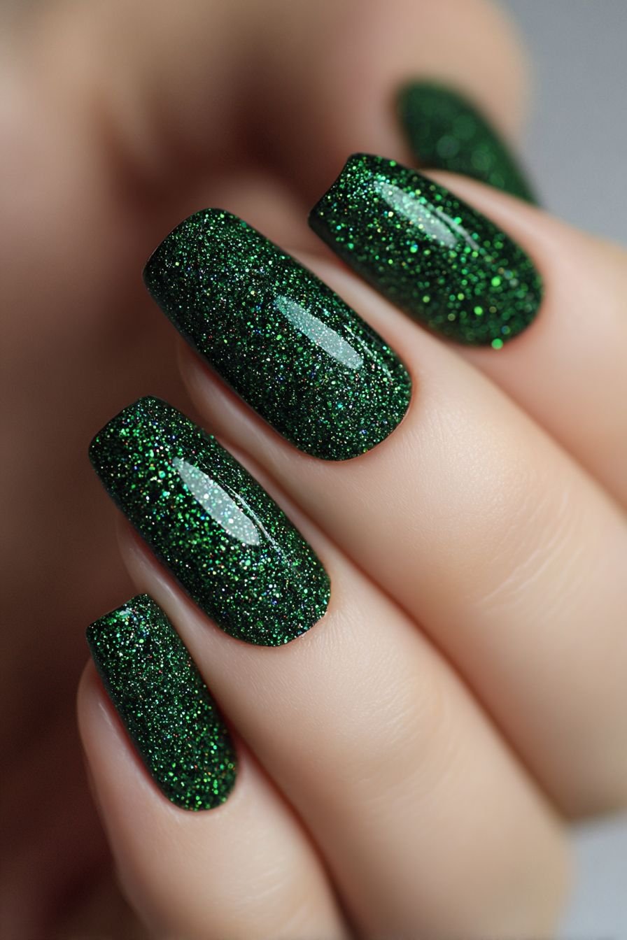 3. Glittery Forest Green Nails for Holiday Glam
