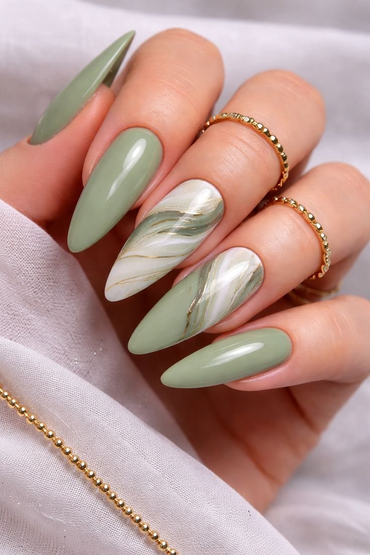 8. Olive Green Nails for Subtle Elegance
