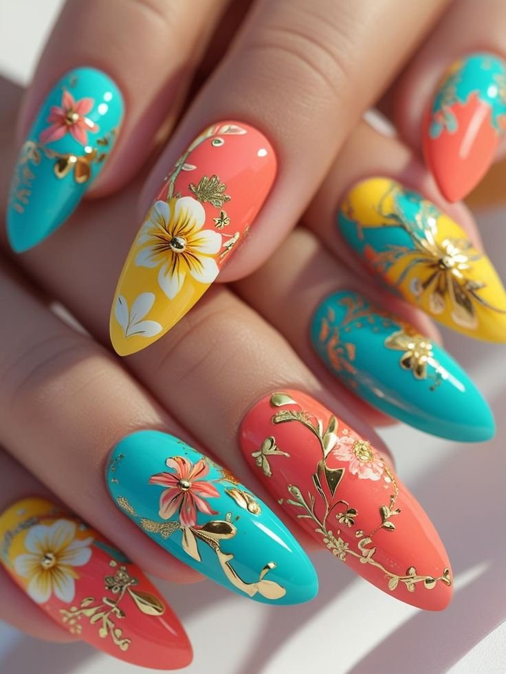 Whether you’re preparing for spring, summer, a tropical getaway, or simply want a fresh, vibrant manicure, this design delivers elegance with a playful twist.