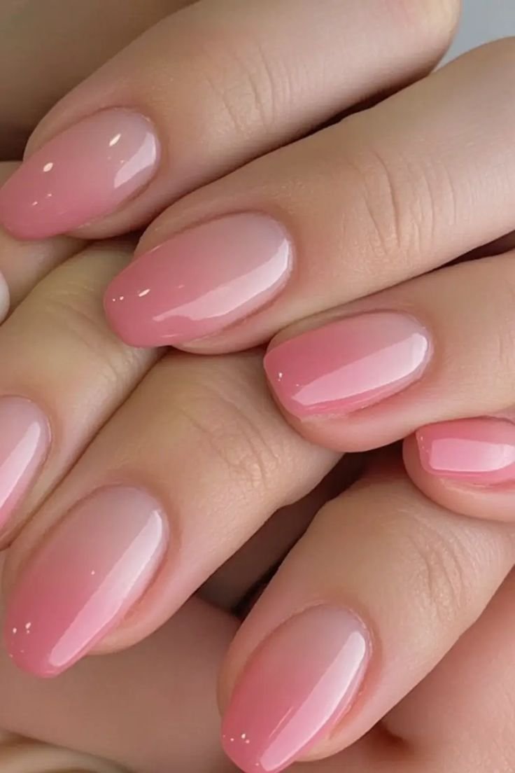 9.Glossy Blush Ombre for a Clean, Polished Finish