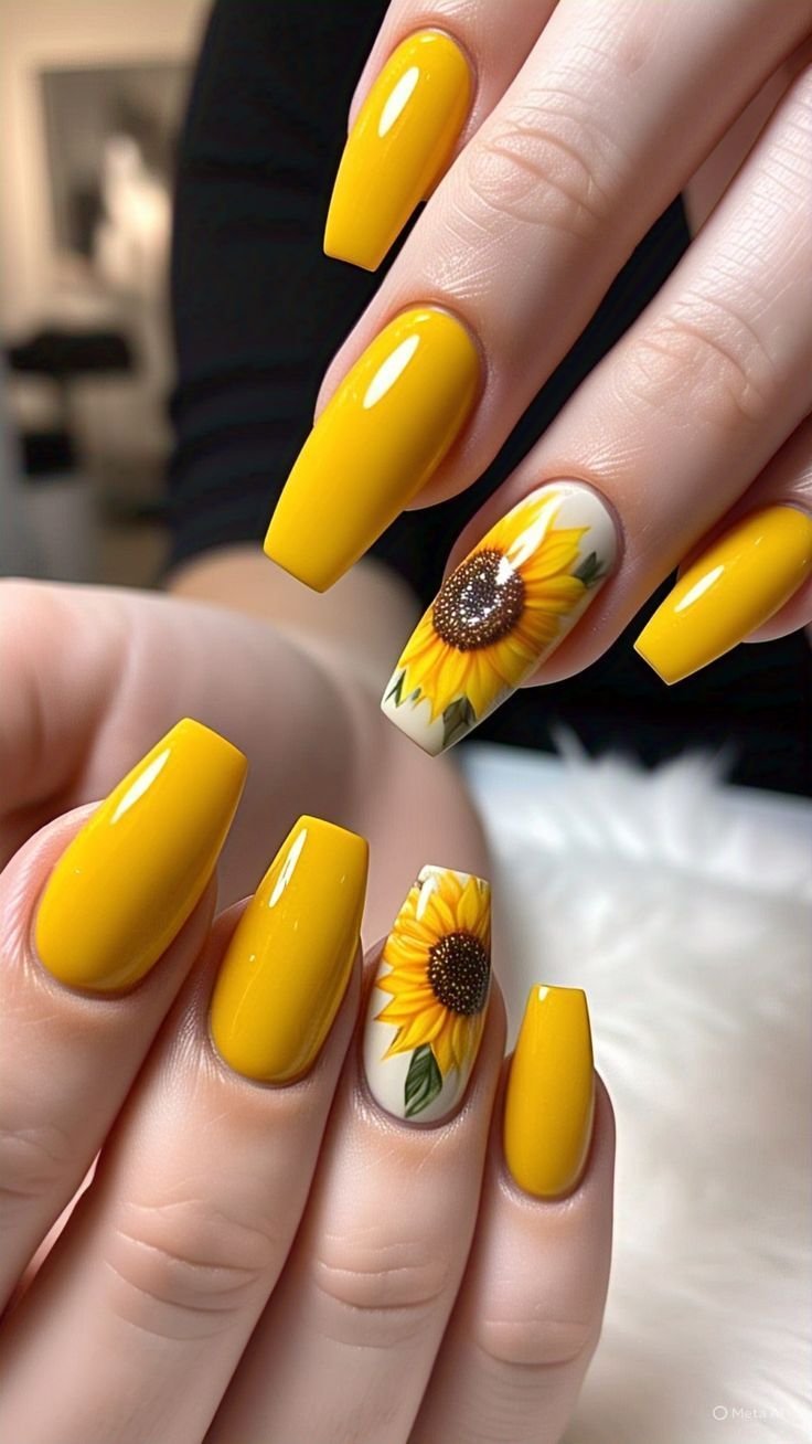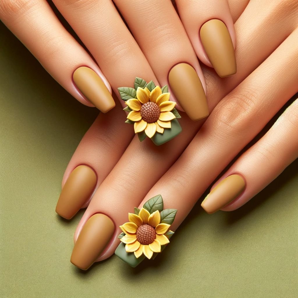 This style is subtle yet stylish, making it suitable for everyday wear. Matte sunflower nails are perfect for those who prefer a unique and contemporary look.
