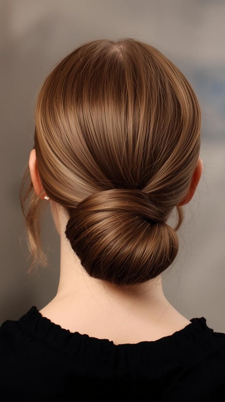 For an instantly polished look, try a sleek low bun. Start by brushing your hair back smoothly and creating a clean middle or side part. Apply a small amount of smoothing serum to control frizz. Gather your hair at the nape of your neck and secure it into a low ponytail. Twist the ponytail tightly and wrap it around the base, pinning it neatly. Finish with light hairspray to hold everything in place. This style looks elegant, professional, and timeless—perfect for work or events, yet it takes only minutes to achieve.