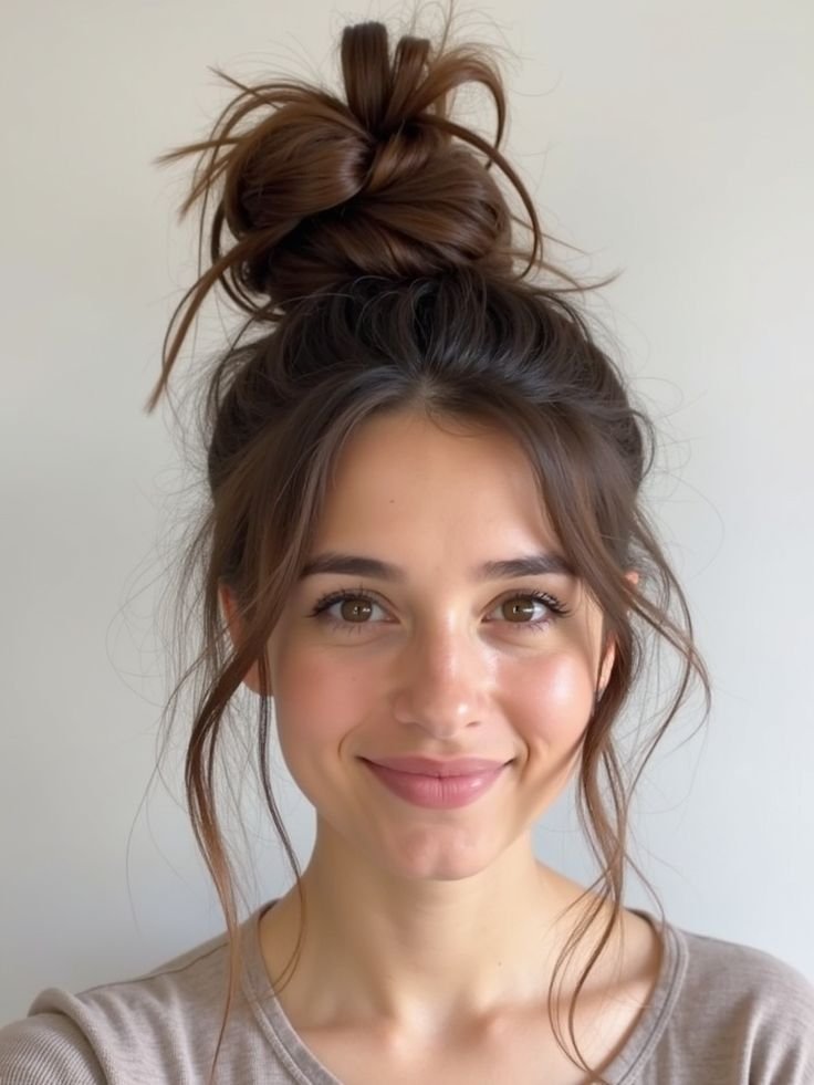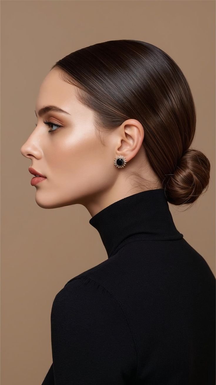 Gather hair into a high ponytail, twist tightly, and wrap into a compact bun. Secure with pins and smooth edges with gel. The top knot elongates your profile and looks sleek yet effortless. Perfect for busy days when you need style in seconds.