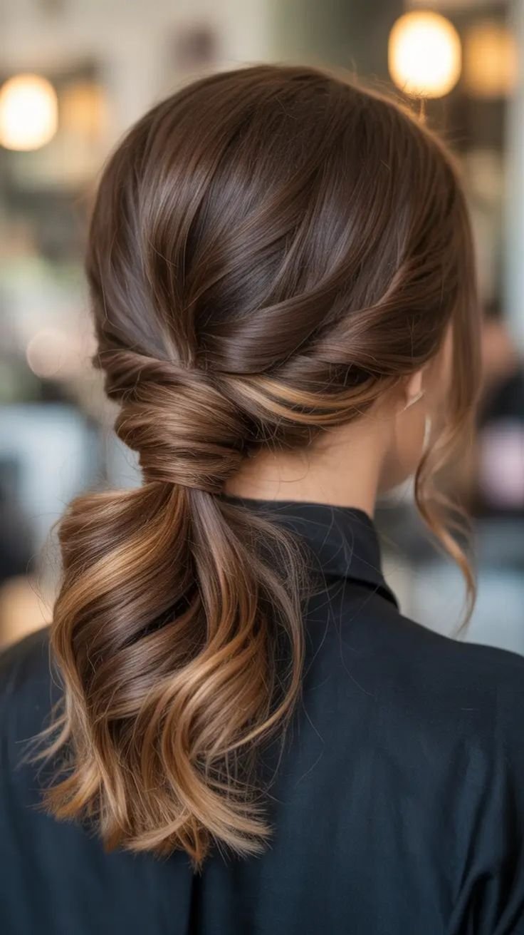 Create a low ponytail, then split the hair just above the elastic and flip the ponytail through the opening. This simple twist detail adds sophistication without extra effort. Loosen slightly for volume. It’s an elegant option for work or events and takes almost no time to master.