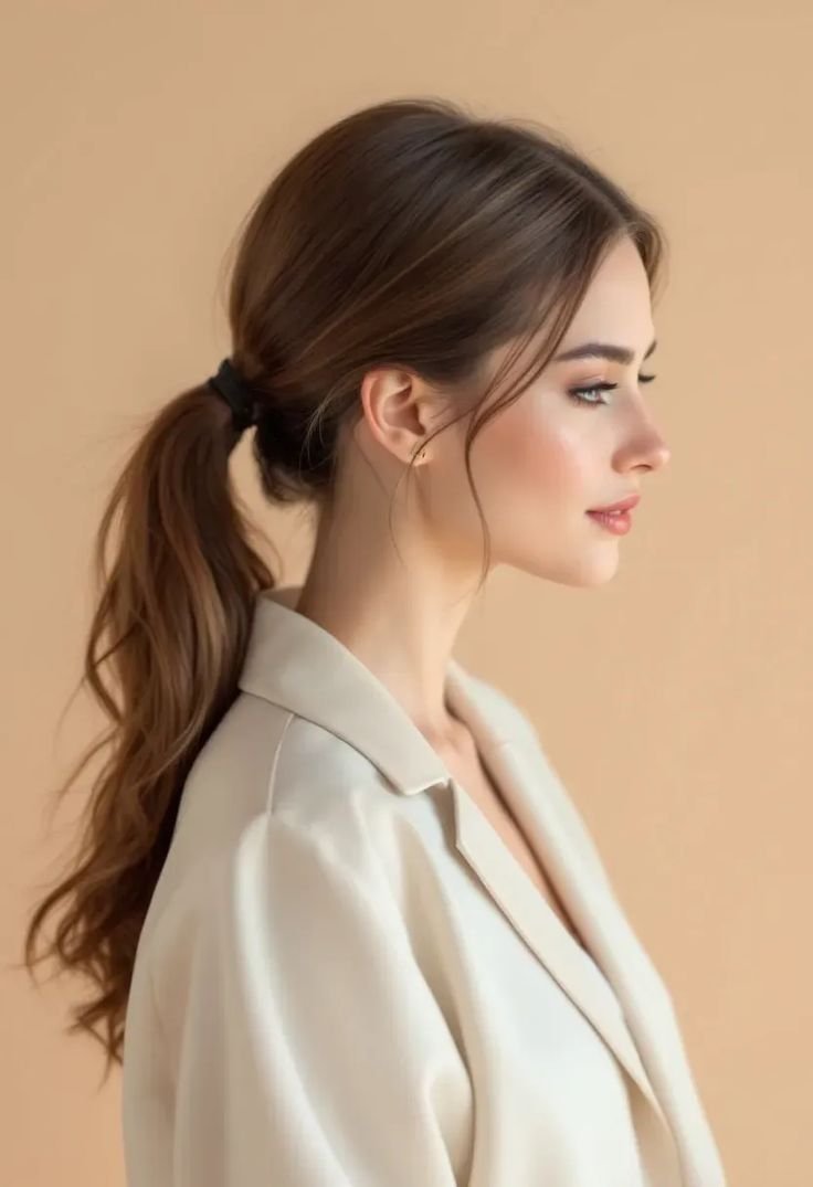 Instead of a basic ponytail, tease the crown slightly before securing hair at the nape. Wrap a strand around the elastic for a polished finish. Curl the ponytail lightly for softness. This subtle lift adds elegance and keeps the style from falling flat. It’s professional, chic, and incredibly quick to recreate.