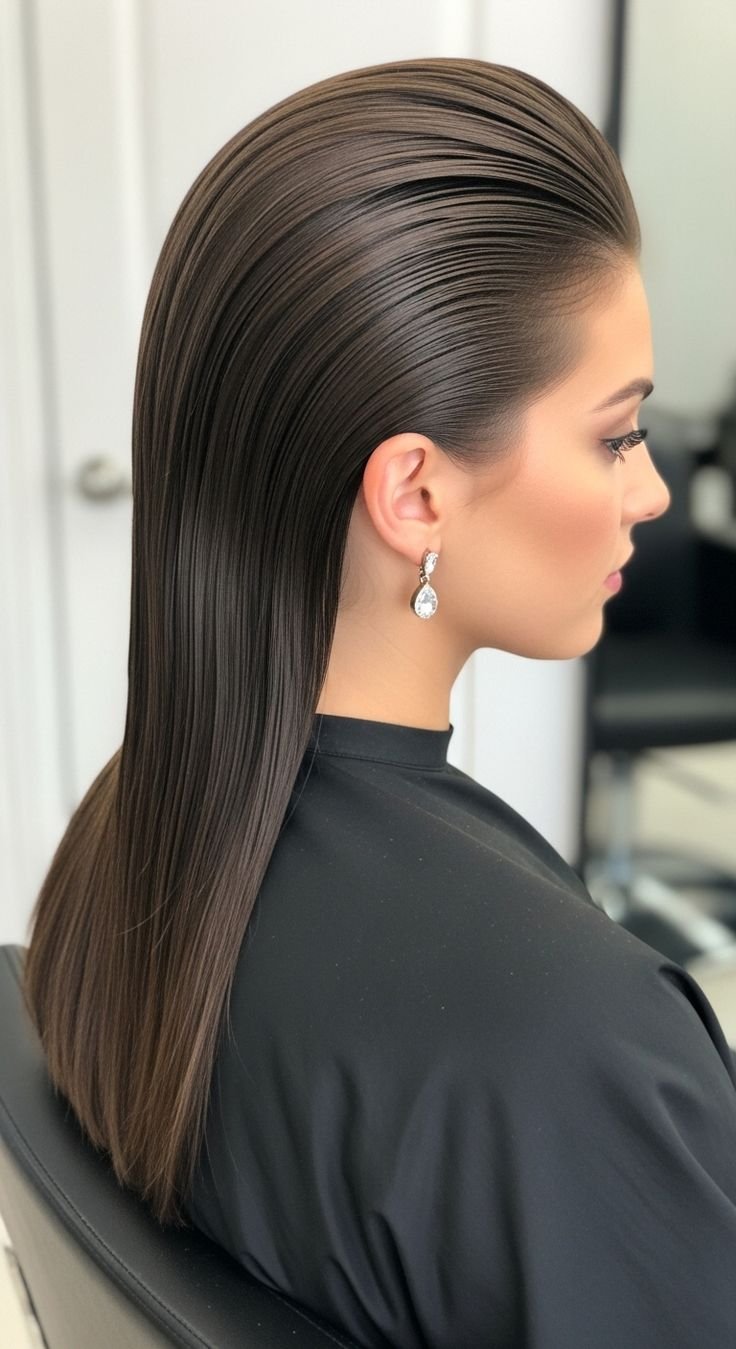 Straight hair can look ultra-sleek when done right. Start with a heat protectant and run a flat iron through small sections for smoothness. Focus on creating a clean part and tucking one side behind your ear for a modern finish. Apply a lightweight serum to tame flyaways. The shine and precision make this style appear professionally done. It’s simple but powerful, especially when paired with bold makeup or statement earrings. In just five minutes, you can achieve a glossy, refined look that never goes out of style.