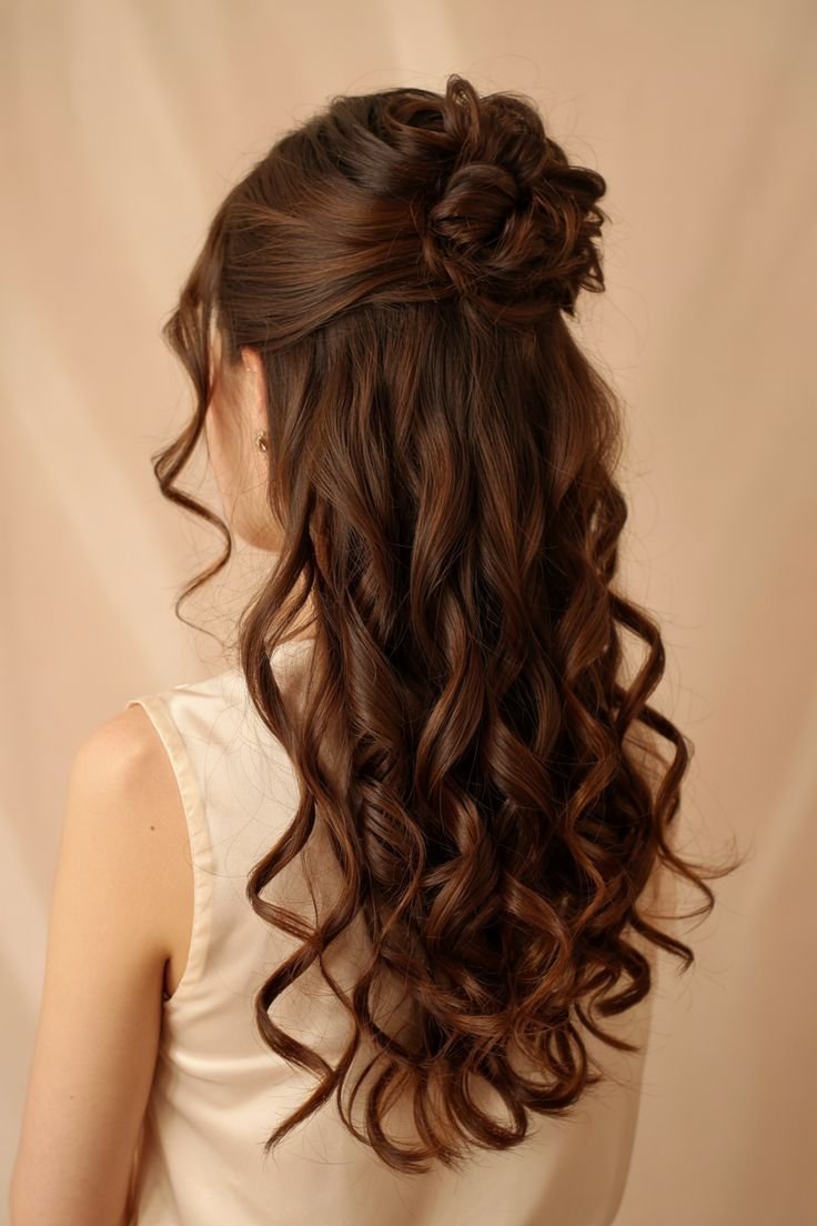 For a quick romantic look, section off the top half of your hair. Take small pieces from each side, twist them back, and secure together at the center with a clip or elastic. Loosen the crown slightly for volume. This hairstyle blends structure with softness and flatters nearly every face shape. It’s ideal for second-day hair and requires minimal tools. Add subtle curls beforehand for extra texture. The finished result looks thoughtful and styled, yet it only takes minutes to achieve.