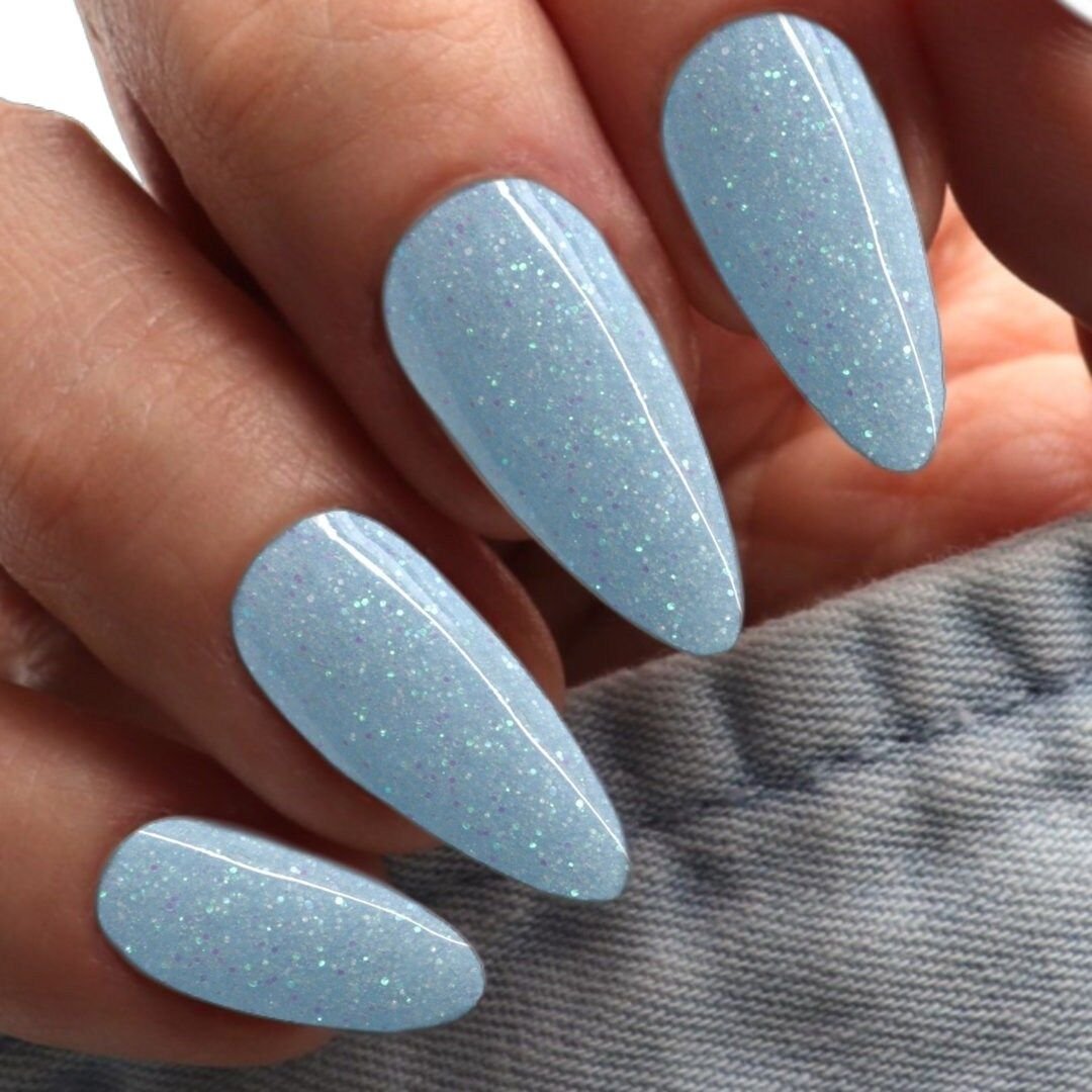 Icy blue nails capture the crisp beauty of winter landscapes. For the 2025–2026 season, this cool shade is trending in various almond nail designs. Soft pastel blue creates a delicate frozen look, while deeper icy tones feel dramatic and bold.