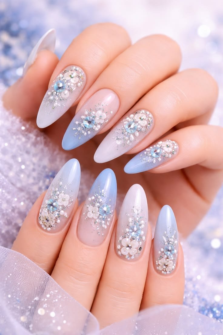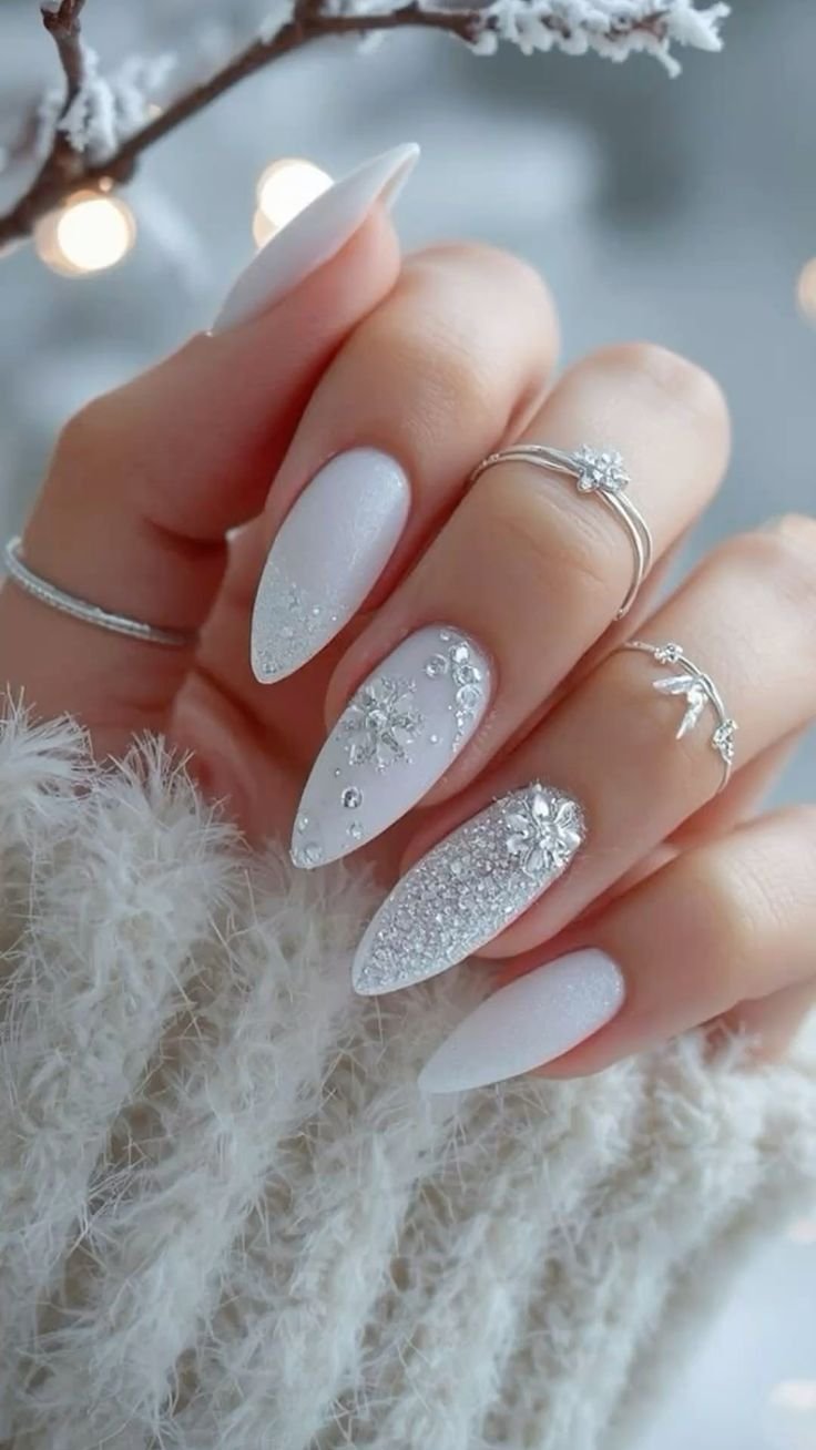 11. Crystal Frost: Sparkling Almond Nail Ideas for Winter 2026