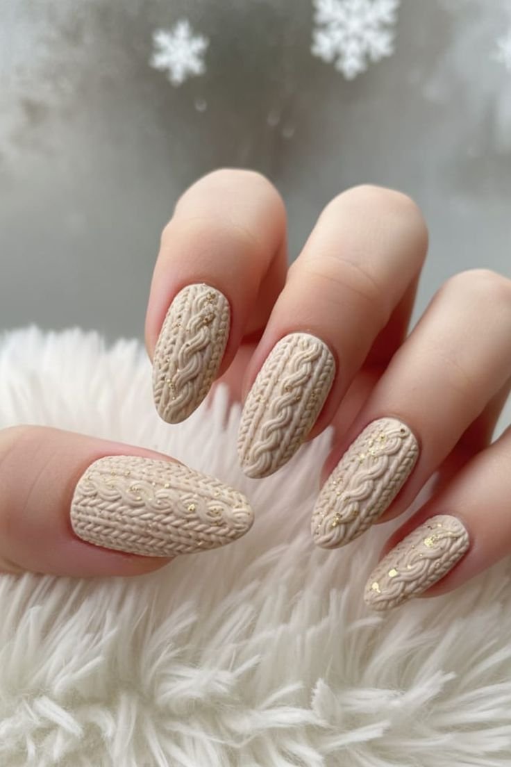 17. Cozy Knit Nails: Sweater-Inspired Almond Designs