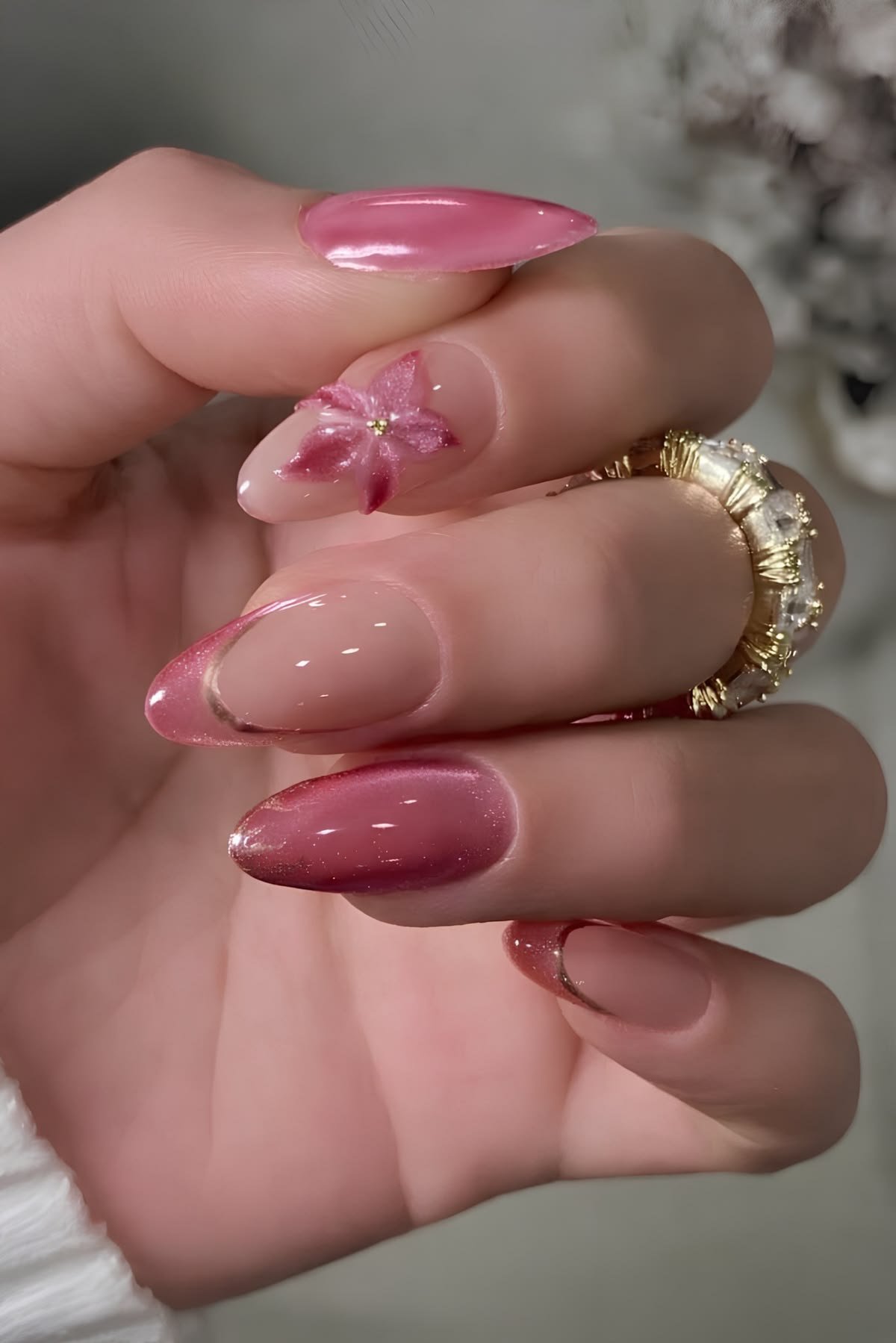 Soft pink tones take center stage in winter 2026, offering a delicate and feminine twist on seasonal nail trends. Almond nails enhance this look with their graceful silhouette.