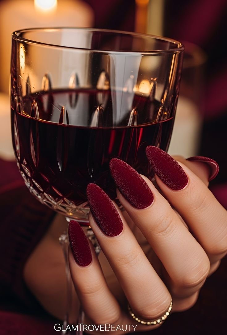 9. Velvet Frost: Textured Almond Nails for a Cozy Winter Look