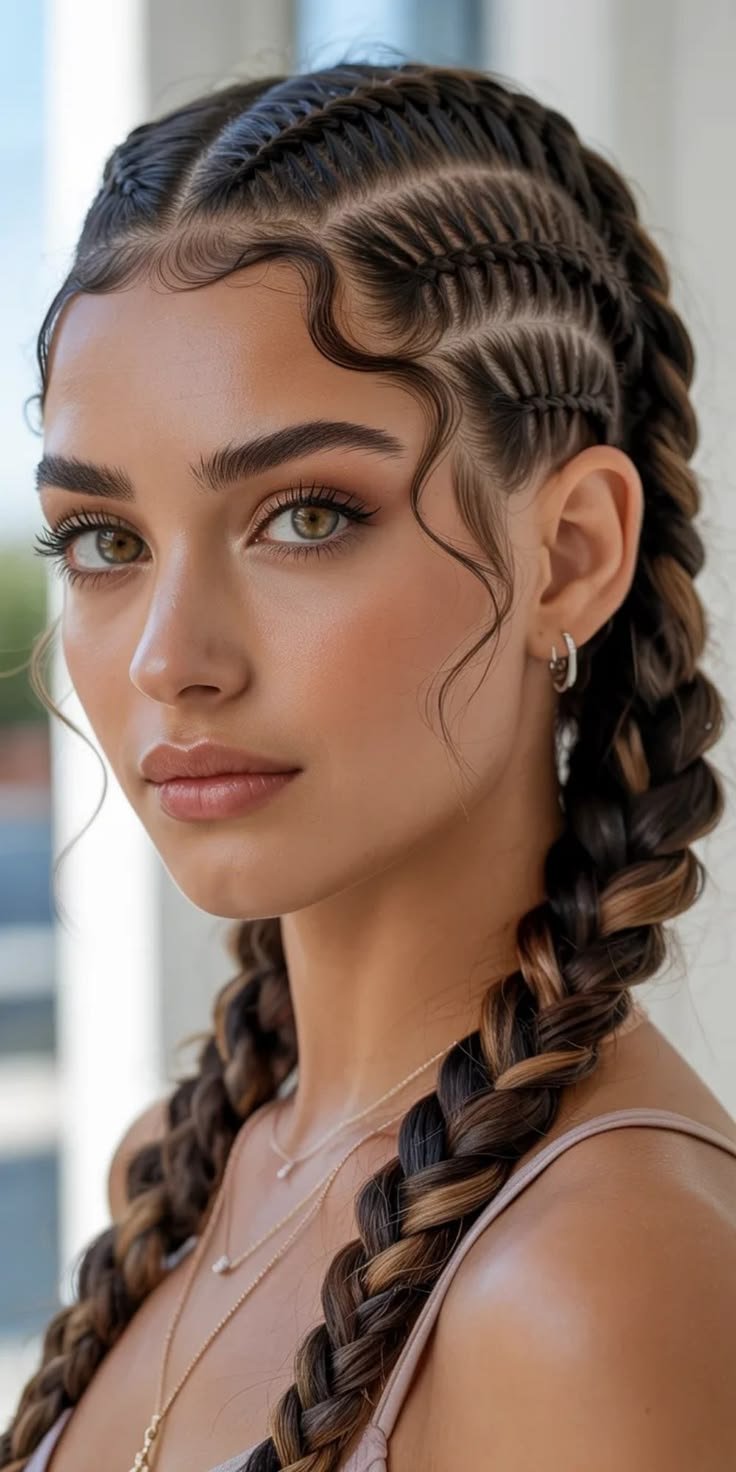 Tribal braids feature creative patterns and designs that stand out. This style allows for personalization with different parting styles and accessories. For winter, consider adding darker tones or metallic accents. Tribal braids are perfect for expressing individuality while protecting your hair.