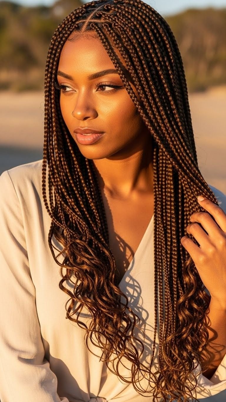 Goddess braids combine traditional braiding with loose, curly ends for a soft and feminine finish. This style is perfect for winter events and holiday gatherings. The curls add volume and movement, making the hairstyle look more dynamic. To maintain the curls, use a light mousse and avoid excessive manipulation. Goddess braids are both protective and glamorous.