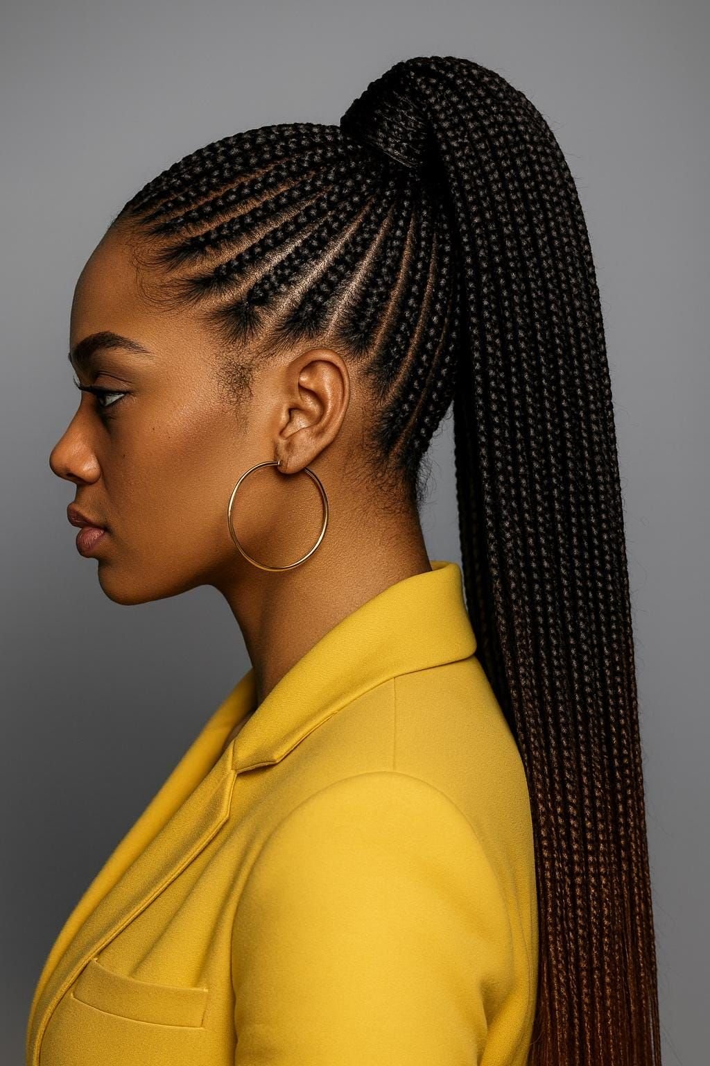Cornrows with extensions are a stylish and protective hairstyle that combines traditional cornrow braiding with added hair extensions for length, volume, and creative design. This look is both functional and fashionable, making it a popular choice for everyday wear, special occasions, and long-term protective styling.