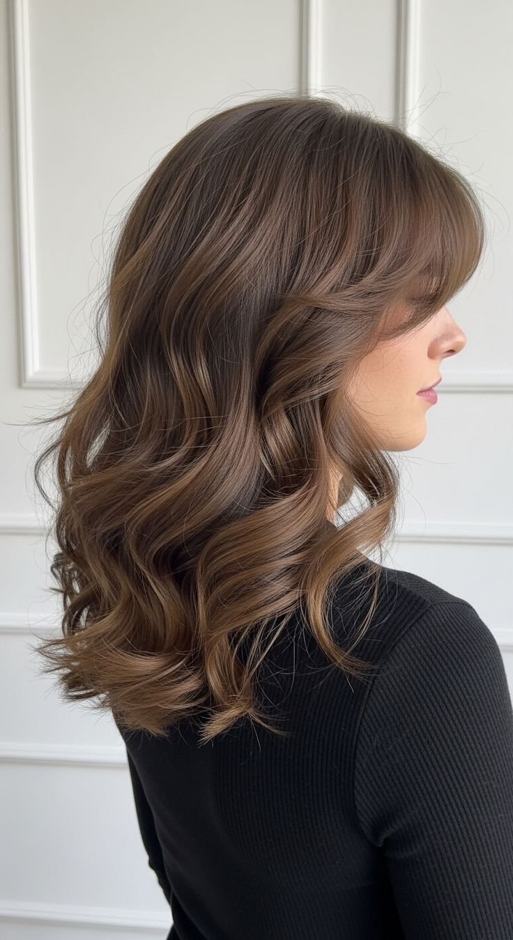 Winter 2026 is all about soft, touchable layers paired with effortless waves. This style adds movement while preventing hair from looking flat under heavy coats and scarves. Use a large-barrel curling iron for loose bends, then brush them out for a relaxed finish. A light texturizing spray keeps volume intact despite dry winter air. This look works beautifully for medium to long hair and complements cozy knits and structured winter outfits.